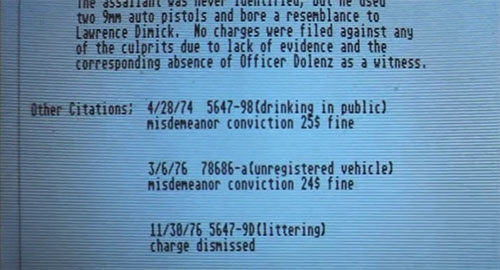 | THE NAKED GUN: FROM THE FILES OF POLICE SQUAD! April 27, 1988 Police Squad Officer Nordberg attempts to bust a heroin drug operation at the docks organized by dock's owner Vincent Ludwig, and is shot by Ludwig's henchmen. |