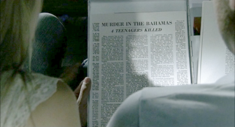 | FRINGE September 9, 1997 Date of Jill Risk's newspaper obituary: WOMAN DIES IN CAR CRASH - one of the young women in kidnapped teenager Tyler Carson's search history that Astrid and Olivia find, from the search for his mother. |
