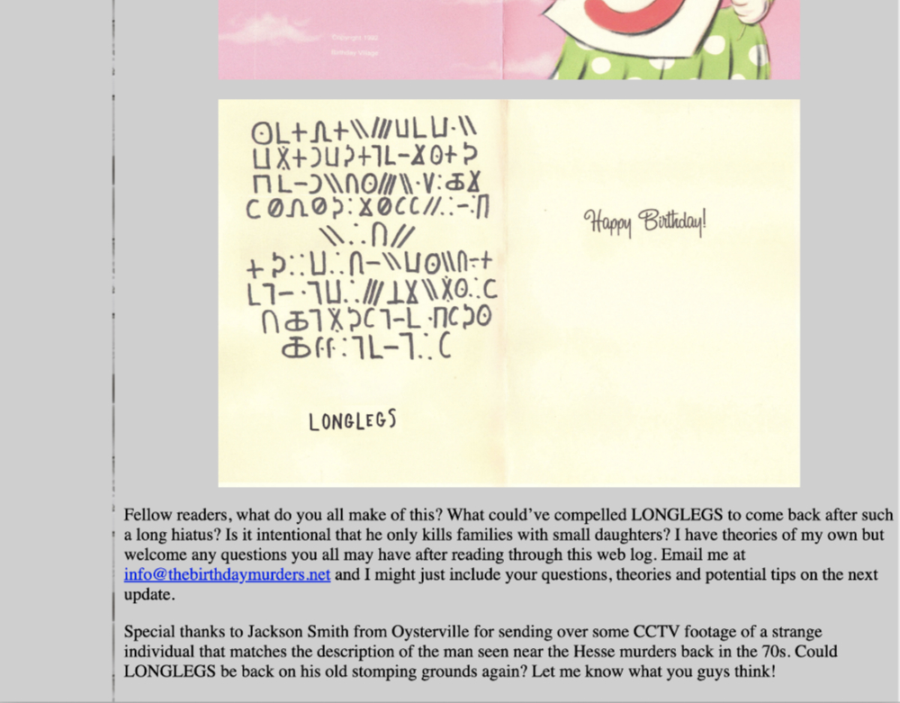 | LONGLEGS November 4, 1992 Longlegs victims the Horn family found dead in an apparent murder-suicide perpetrated by father Curtis Horn in Troutdale, Oregon. |