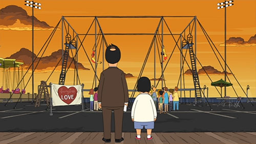 | BOB'S BURGERS Swing into Love Fun trapeze experience that Linda buys for her and Bob for Valentine's Day, but with Tina depressed, plans change and Bob and Gene go together. |