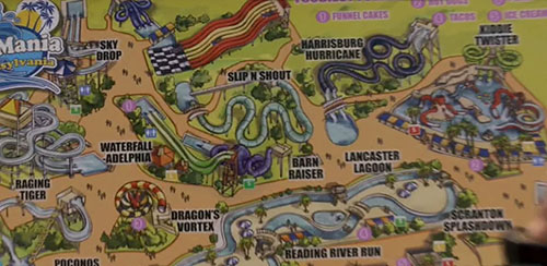 | IT'S ALWAYS SUNNY IN PHILADELPHIA Harrisburg Hurricane Ride at the AquaMania water park, as seen on the park map. |