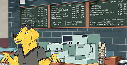 | 14 | Double-startled Macchiato  | BOJACK HORSEMAN 2014 Animated Series | Menu | Drinks |