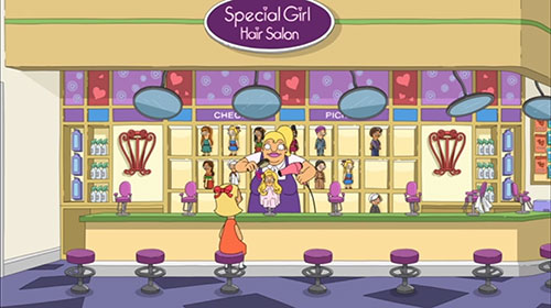 | BOB'S BURGERS Special Girl Hair Salon Linda, Tina and Louise visit Gretchen at her new jb, where she styles doll hair in the Special Girl Hair Salon at the Special Girl Doll Store, and eat dinner there, at the Cafe Dollisiouso, where they are required to be accompanied by "dinner dolls". |
