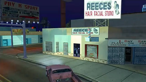 | GRAND THEFT AUTO: SAN ANDREAS Reece's Hair & Facial Studio Local barber shop in owned by Old Reece, located in Idlewood, Los Santos. |
