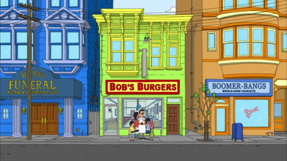 | BOB'S BURGERS Boomer-Bangs Store next door. Middle-aged haircuts. |
