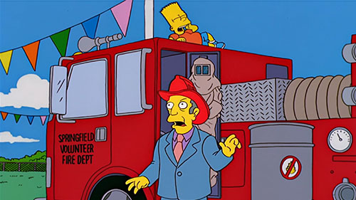THE SIMPSONS Springfield Volunteer Fire Department Firefighters that rush to Principal Skinner's house after he starts a fire in the kitchen making burgers for Superintendent Chalmers.