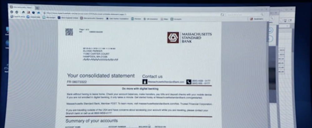 | MR. BROOKS Gibson Court Homicide detective Tracy Atwood's address in Portland, visible in Tracy's police personnel file. |