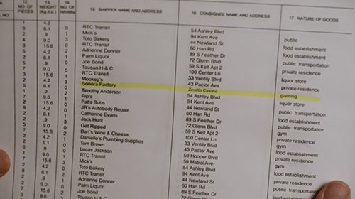 | CRIME SCENE INVESTIGATION: VEGAS Center Ln Address of shipper listed on the manifest of the cargo plane that lands autonomously at McCarran Airport with everyone on board dead. |