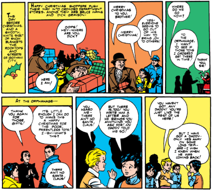 A letter to Santa from an orphan wanting his father out of prison for a crime he didn't commit prompts Batman and Robin to investigate the supposed crime.