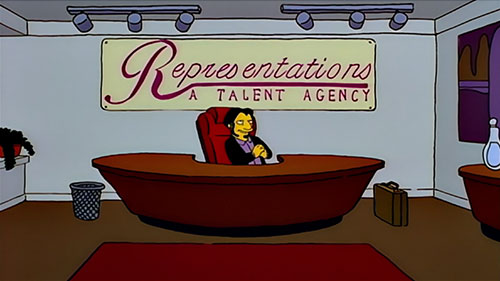| # | | 1 | Representations: A Talent Agency  | THE SIMPSONS 1989 Animated Series | Services | Talent Agencies | | Representations: A Talent Agency Troy McClure's agent MacArthur Parker's talent agency, voiced by Jeff Goldblum.