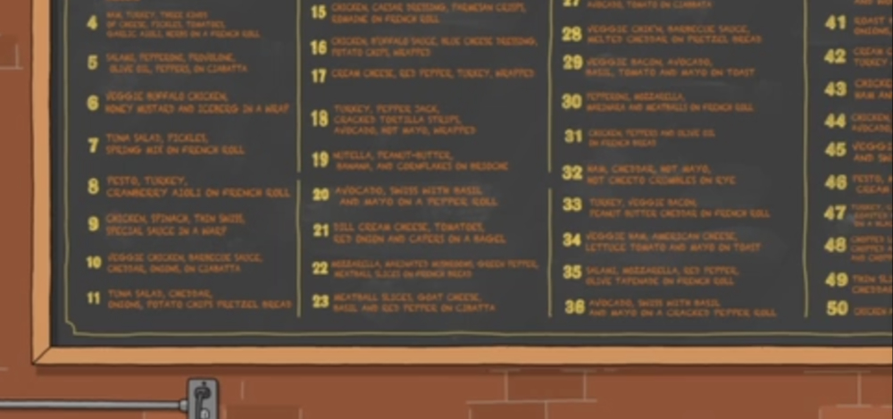 Total Record Results: 1 - Medium: ANIMATED SERIES / Group: BBB / Category: MENU / Subcategory: SANDWICHES |