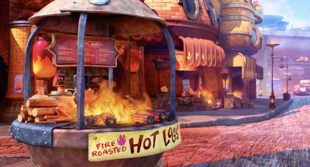 | # | | 1 | Firetown Hot Log  | ELEMENTAL 2023 Animated Film | Menu | Menu Items | | Firetown Hot Log Menu item at fast food stand Hot Logs in Fire Town.