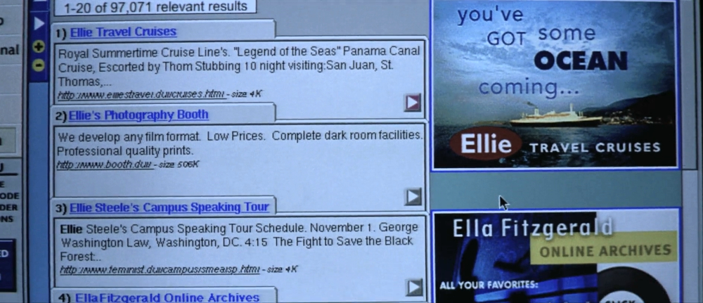 Travel service visible when Jenny searches online for E.L.E.