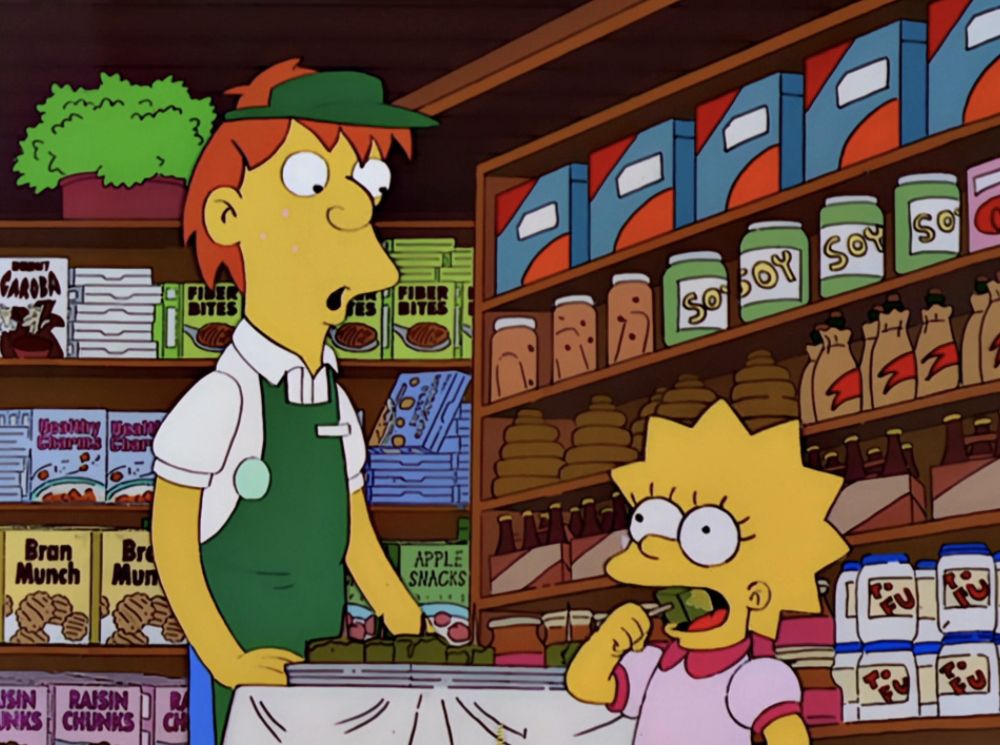 | # | | 1 | Healthy Charms  | THE SIMPSONS 1989 Animated Series | Food | Breakfast Cereal | | Healthy Charms Breakfast cereal sold at Eatie gourmet's, the grocery store the Simpsons visit after church.