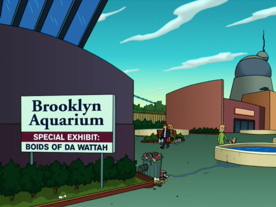 | # | | 1 | Boids of da Wattah  | FUTURAMA 1999 Animated Series | Living Things | Animals | | Boids of da Wattah Special exhibit at the Brooklyn Aquarium, where Fry takes his Lucy Liu robot.