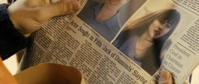 | # | | 1 | Los Angeles Post  | SEVEN PSYCHOPATHS 2012 Film | Media | Newspapers-misc | | Los Angeles Post Newspaper headline: Actor Sought in Fifth 'Jack of Diamonds' Slaying.