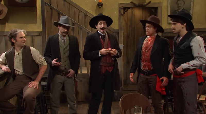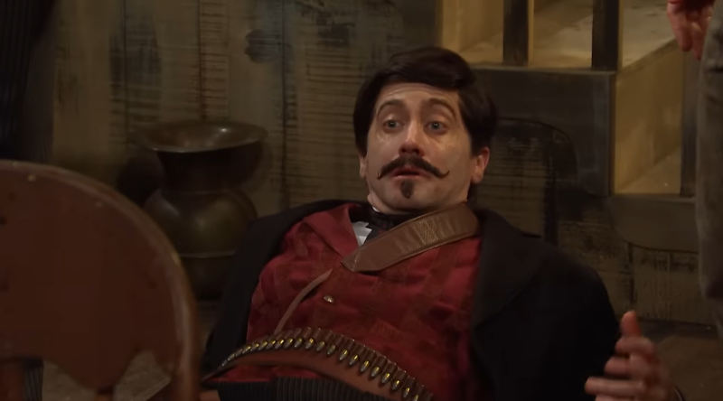 Comments:- Movie title inspired by Shane Black's Kiss Kiss Bang Bang. Sketch: Tombstone. [Episode 2022 Jake Gyllenhaal / Camila Cabello]