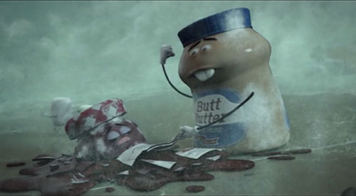 | # | | 1 | Butt Nutter  | SAUSAGE PARTY 2016 Animated Film | Food | Condiments | | Butt Nutter Peanut butter product sold at Shopwell's, visible in the MILF's shopping cart.