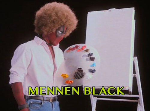 | # | | 1 | Mennen Black  | DEADPOOL 2 2018 Film | Matter | Colors | | Mennen Black Color that flashes across the screen in the Deadpool 2 Bob Ross trailer.