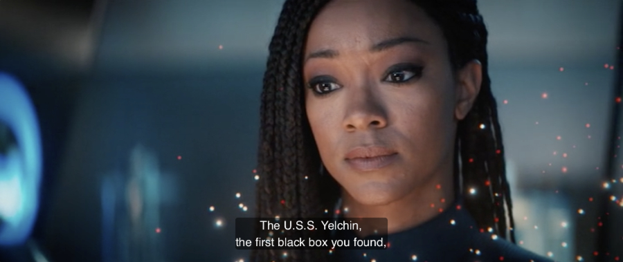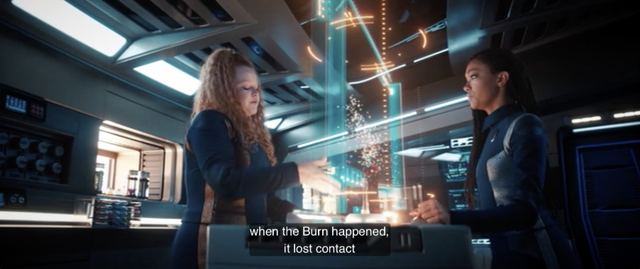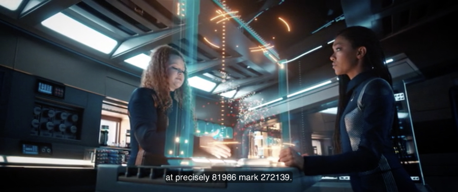 Comments:- Michael discovers that when the Burn happened, the U.S.S. Yelchin lost contact at precisely 8-1-9-8-6 mark 2-7-2-1-3-9. The Gav'Nor, on the other hand, a thousand like years away, lost contact one one-millionth of a micro-second later. [Season 3 Episode 7 Unification III]