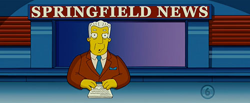 | # | | 1 | Springfield News  | THE SIMPSONS MOVIE 2007 Animated Film | Video | TV-News | | Springfield News Kent Brockman reports on the town being trapped under a dome, or... Trappuccino!