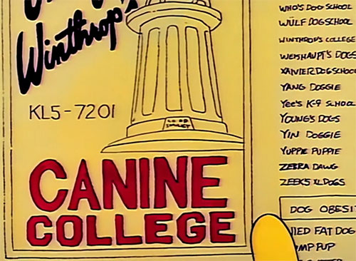 | # | | 1 | Yee's K-9 School  | THE SIMPSONS 1989 Animated Series | Pets | Pet Obedience Schools | | Yee's K-9 School Obedience school for dogs listed in the Springfield yellow pages.