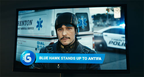 - TV news featuring a story about superhero Blue Hawk. [Season 3 Episode 5 The Last Time to Look on this World of Lies]