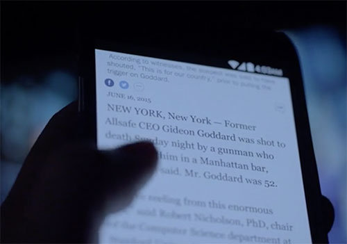 | # | | 2015 - 11 years ago | | 1 | June 14, 2015  | MR. ROBOT 2015 TV Series | 21st Century: 10s | Events | | June 14, 2015 Former Allsafe CEO Gideon Goddard was shot to death Sunday night by a gunman who confronted him in a Manhattan bar.