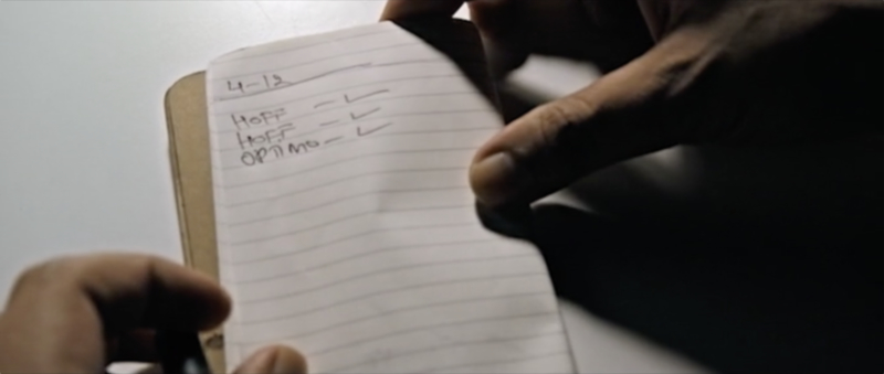 | RELAY April 12, 2025 Hoffman, a potential whistleblower who used to work at Optimo Pharmaceuticals, changes his mind after being intimidated by henchmen sent by the company. He sends mediator Ash copies of the incriminating documents, and surrenders the originals to the CEO, McVie. Ash secretly follows Hoffman until he safely boards a train out of the city, then adds the documents' copy to his collection at a warehouse in Newark. |