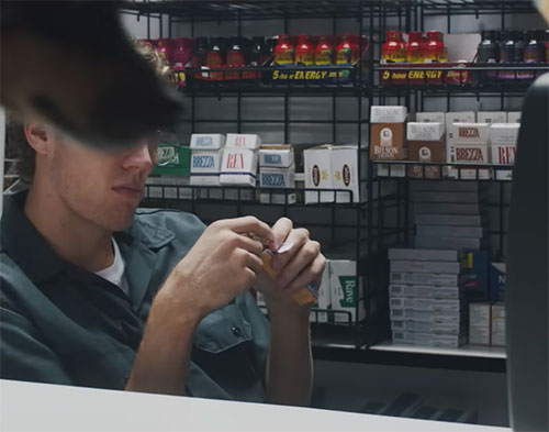 Cigarette advertisement at Eric's Expert Service gas station where Sawyer plays a jewelry con.