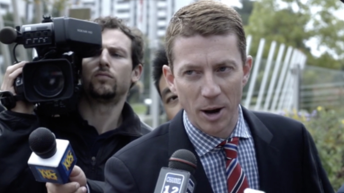 TV news microphone at Josh's press conference.