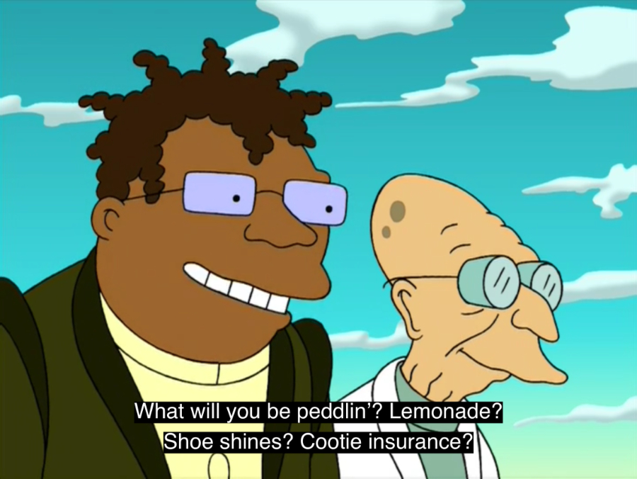 | FUTURAMA Cooties Joke Hermes makes when Dwight and Cubert say they're creating their own business. |