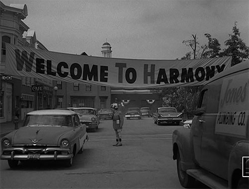 Town in New York where Woodrow Mulligan lives in 1890, before being transported into the future by Professor Gilbert's Time Helmet. "Our hero... Woodrow Mulligan... a disgruntled citizen of Harmony, New York 1890."