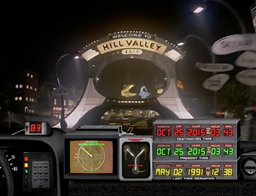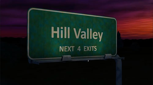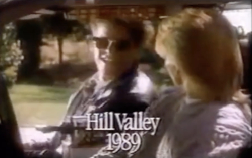 California town. In a 1989 TV commercial, two teenagers use Doc Brown's Delorean Time Machine to travel from Hill Valley in 1989 to Hill Valley in 2015.