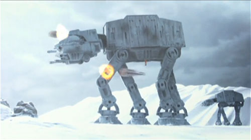 The Empire tracks the Rebels to their base on the icy planet Hoth.