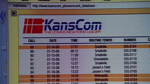 | SMALLVILLE January 16, 2006 Chloe investigates Jonathan's KansCom call records from the week he die, finding several calls from Lionel Luthor. |