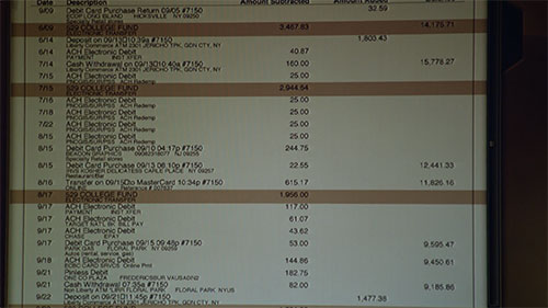 Date Deposit Recorded and ACH Electronic Debit on machine number and former marine Joey Durban's bank statement.