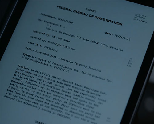 | MR. ROBOT June 24, 2015 Date of classified FBI report on the Five/Nine Hack. |