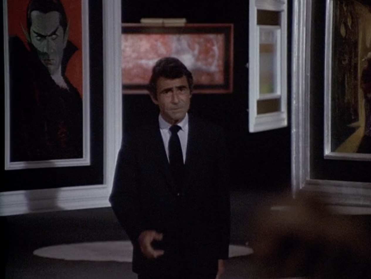 | NIGHT GALLERY Narrator Narrator: Good evening. We welcome you to this palladium of art treasures that range from the kooky to the uncommon, from the bestial to the bizarre, and I'd like to take you on a guided tour through the Night Gallery. A collection of paintings on display for only the most discriminating because it's best that they be seen both after and in the dark. |