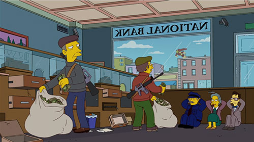 Bank robbed in Comic Book Guy's comic book Everyman.