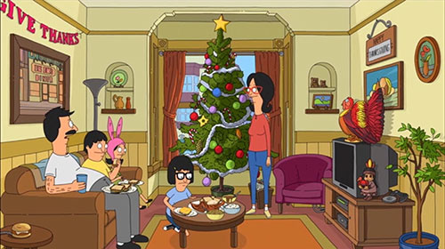 | BOB'S BURGERS November 29, 2013 Linda begins celebrating Christmas for the second time this year by decorating the family's second tree of the season on the day after Thanksgiving. |
