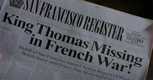 Newspaper headline in the world where the Americans lost the Revolutionary War: "King Thomas Missing in French War"