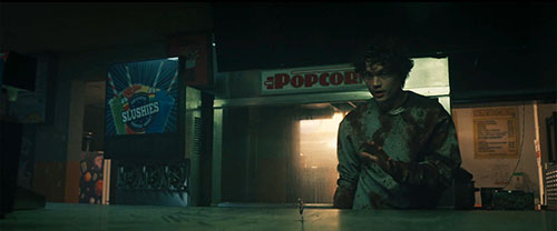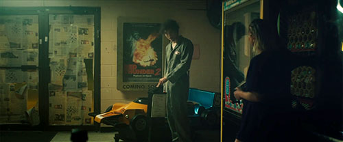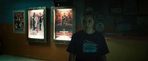 | Race to Death Movie poster visible on the wall at the Stardust Drive-In Theater where Emma and Luke hide out.