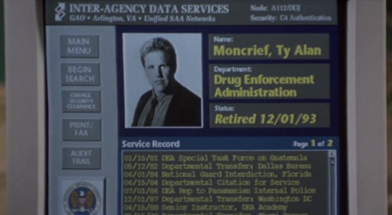 | | 12 | July 4, 1994  | Dates | 20th Century: 90s | Events | | July 4, 1994 Ex-Drug Enforcement Administration (DEA) agent and renegade skydiver Ty Moncrief uses computer expert Earl Leedy to hack into the DEA mainframe computer during an Independence Day parachute exhibition and fireworks display, which is the one day every year when security is loosened around the airspace above D.C. Ty plans to auction the names of undercover agents to drug cartels worldwide.