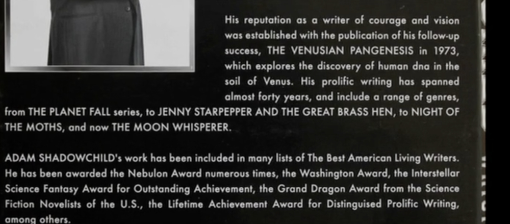 Novel by science fiction author Adam Shadowchild that Clive mentions to the Agents.