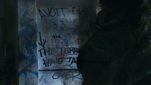| Earth 33 The graffiti in the building reads: Avoid Earth 33. The contagion has spread.