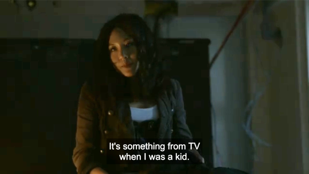 | Suit Up TV show advertised on the slightly more futuristic version of Earth that the group visits.