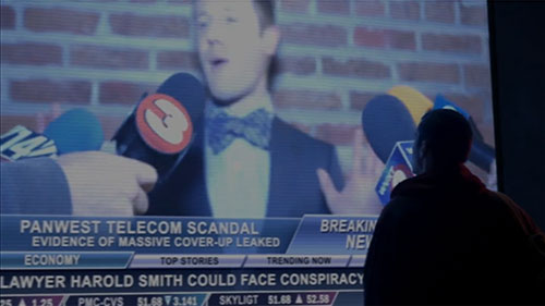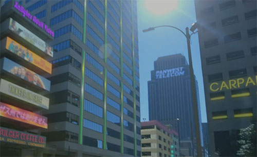| Panwest Telecom Communications company advertised on the slightly more futuristic version of Earth that the group visits.