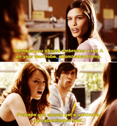 | Film 2010. Written by Bert V. Royal. Directed by Will Gluck. Starring Emma Stone, Penn Badgley, Thomas Haden Church, Patricia Clarkson, Cam Gigandet, Lisa Kudrow, Malcolm McDowell, Aly Michalka and Stanley Tucci. |  | |