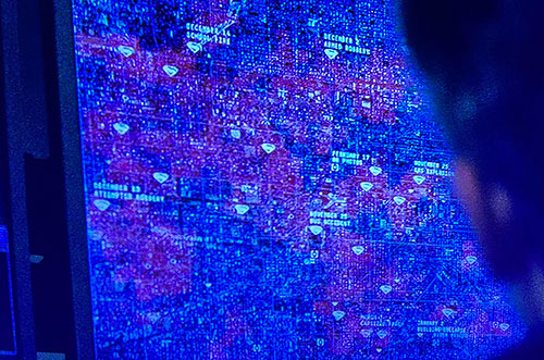 Date of bus accident marked on Bruce's map of Superman's activities.